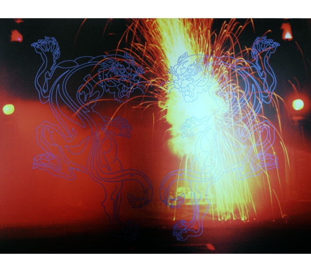 Hellfire Cat | Farbdruck, Silberfolie, Alu-Dibond | 100 x 133 cm