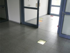 Der Besuchsraum ist der einzige Ort der JVA, in dem der Inhaftierte Kontakt zur Aussenwelt erhält, mit der Familie oder Freunden. Die Begegnung ist ein besonders sensibler Moment, der trotz Glasbarriere und Aufsicht, die Möglichkeit des Austauschs bietet. Es besteht nur ein kurzer Zeitrahmen, in dem sich die Welt des Inhaftierten mit der des Besuchers verbindet. In diesem Rahmen ist das Gespräch, aber auch die Betrachtung von wesentlicher Bedeutung. Daher habe ich für den Besuchsraum eine Bildfolge von Leuchtkästen entwickelt, in der das Thema Kommunikation als diskrete Anmutung erscheint. In verschiedenen atmosphärischen Lichtszenarien begegnen sich Menschen, positionieren sich, suchen und finden den Dialog, auch das Selbstgespräch. Die Fotografien sind so sehr verfremdet, daß der Betrachter sie nicht einer konkreten Örtlichkeit zuordnen kann. Die bewegten Lichtspiele bilden eher einen bühnenartigen Hintergrund für Personen, die teils nur verschwommen, leicht transparent, als Schatten, Zeichnung oder maskenartige Köpfe wahrzunehmen sind. In dem Entwurf verzichte ich bewußt auf die Darstellung von Realität ausserhalb der Gefängnismauern. Es sollen keine unerfüllbaren Sehnsüchte geweckt werden. Sondern diese Bilder stellen eine gestaltete Bildwelt dar, mit atmosphärischem Klang, die Ruhe in der Bewegung vermitteln und den Dialog anregen.