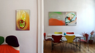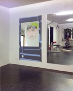 2010, Malerei auf Spiegelglas, (100 x 80 cm), + Wandfarbe, insg. 135 x 240 cm