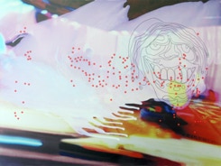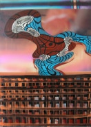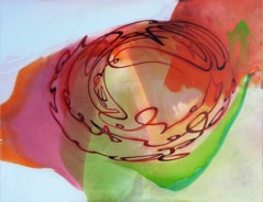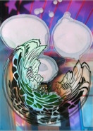 links: Tattoo Maske, 2004, 60 x 40 cm, Malerei auf Spiegelglas